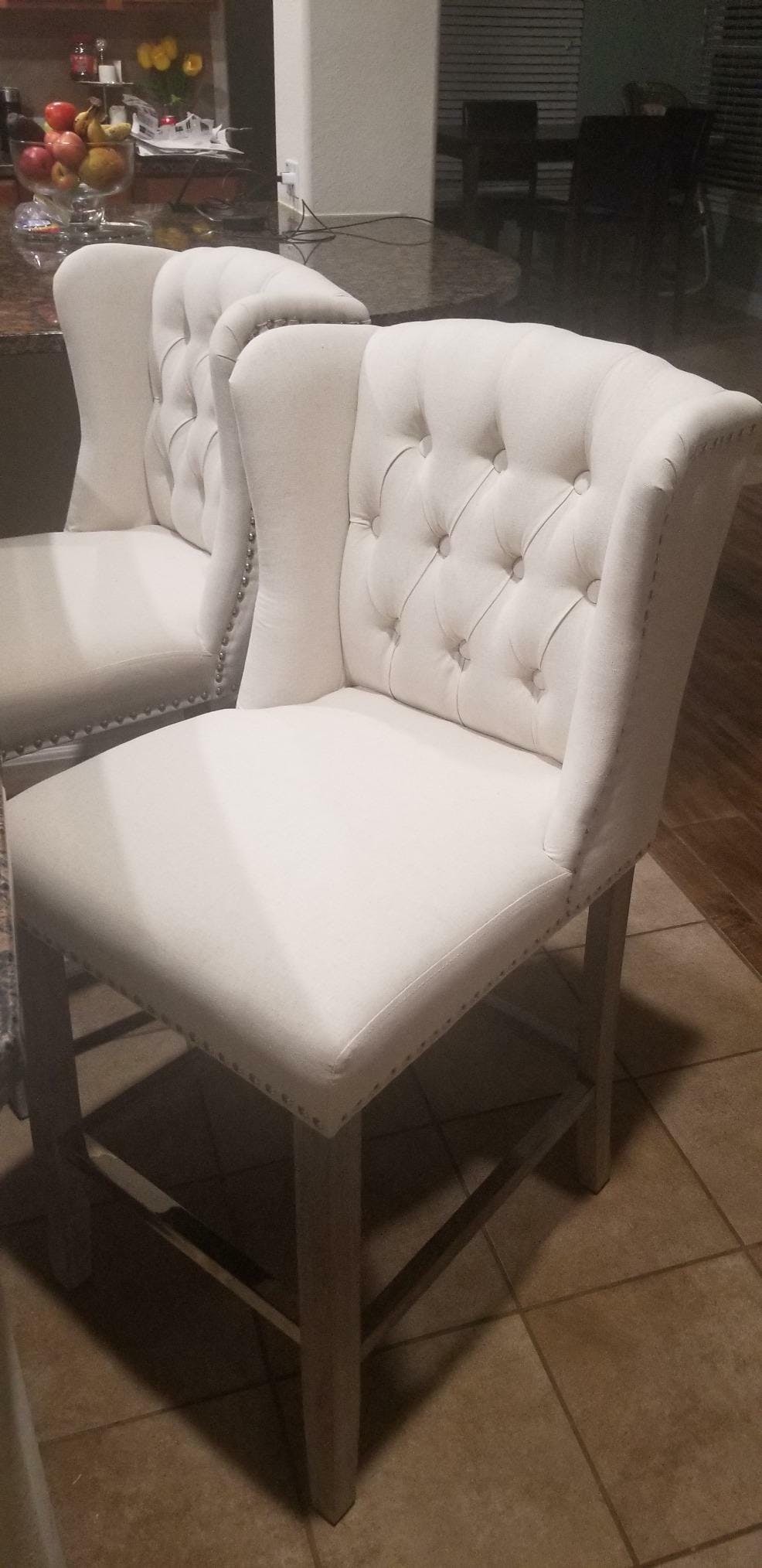 Counter Height Bar Stools Set of 2 with Tufted Back and Nailhead-Trim